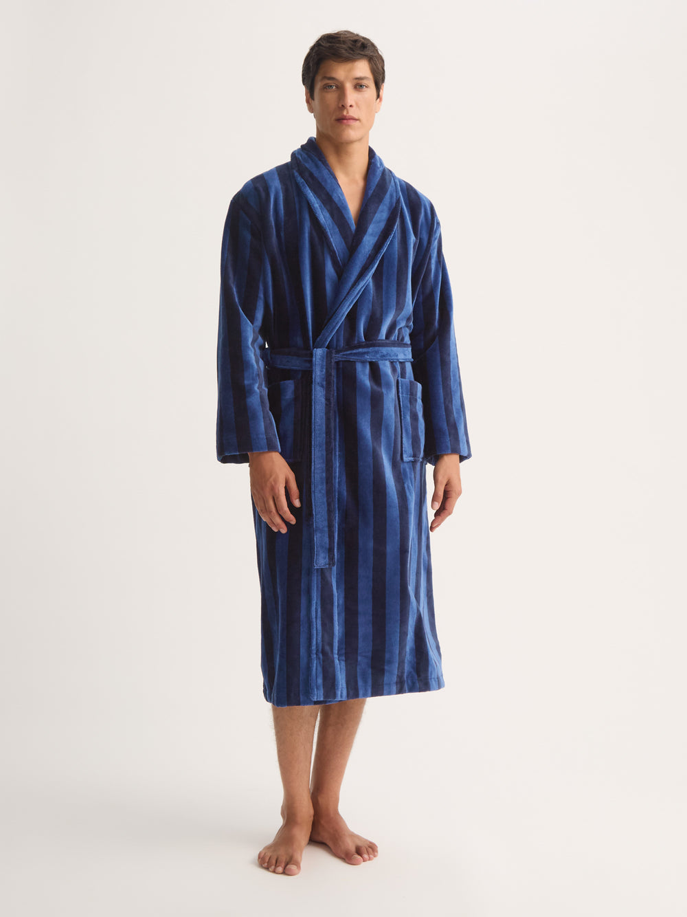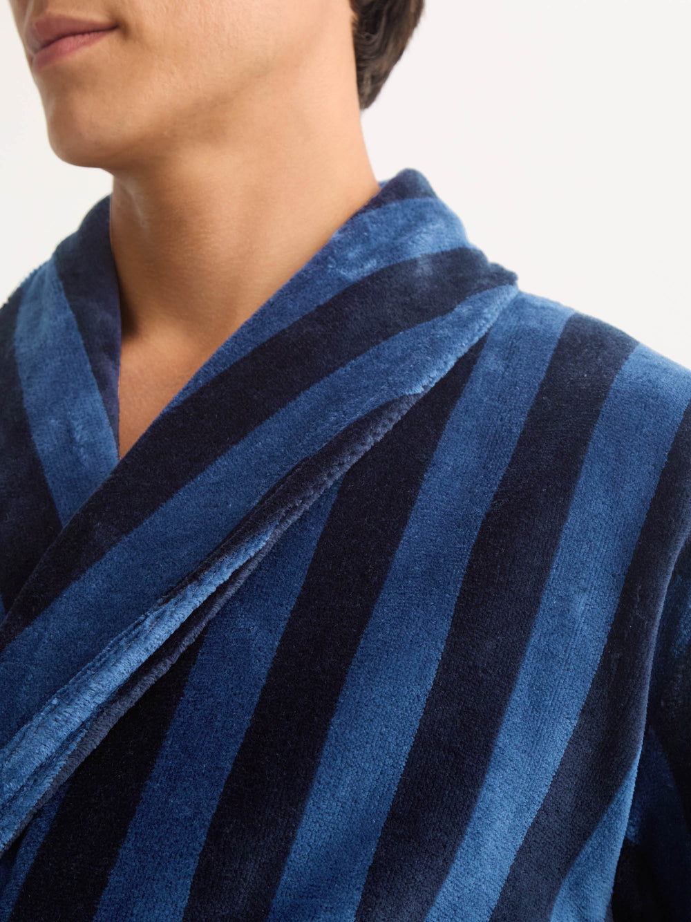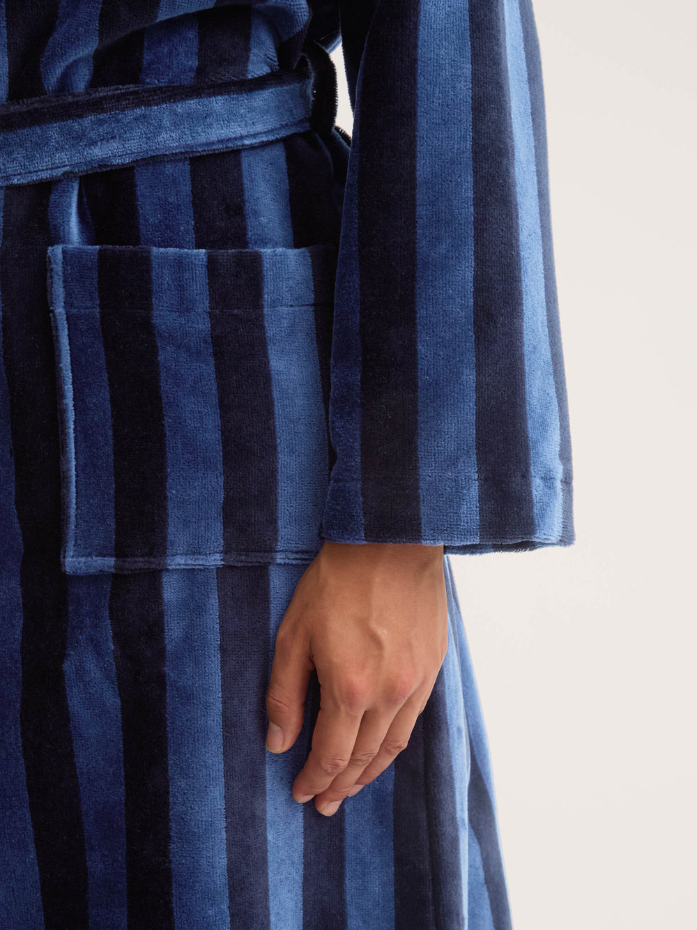 Our Aston bathrobe is a customer favourite, it features a classic shawl collar and two side pockets for practicality while around the house. It's fastened with a fabric tie belt for the perfect relaxed fit.