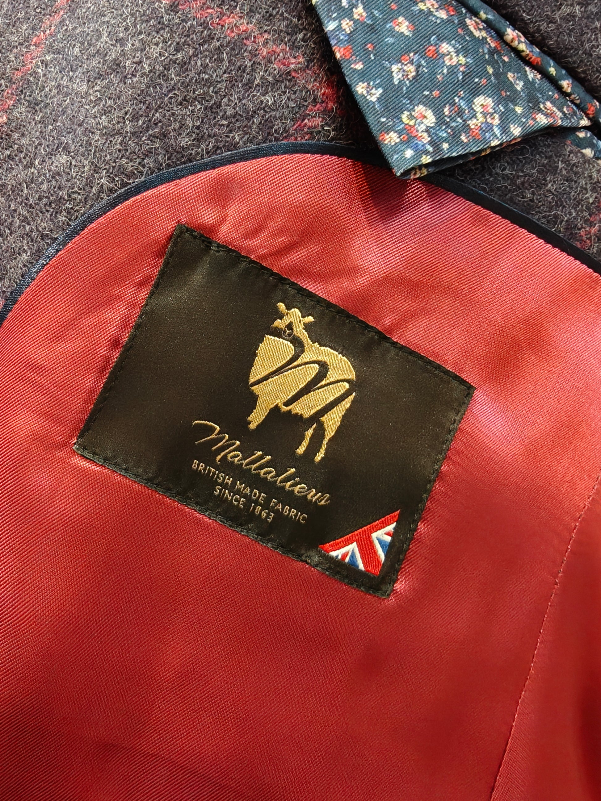 Blue grey tweed with magenta check by Torre for Mazzelli