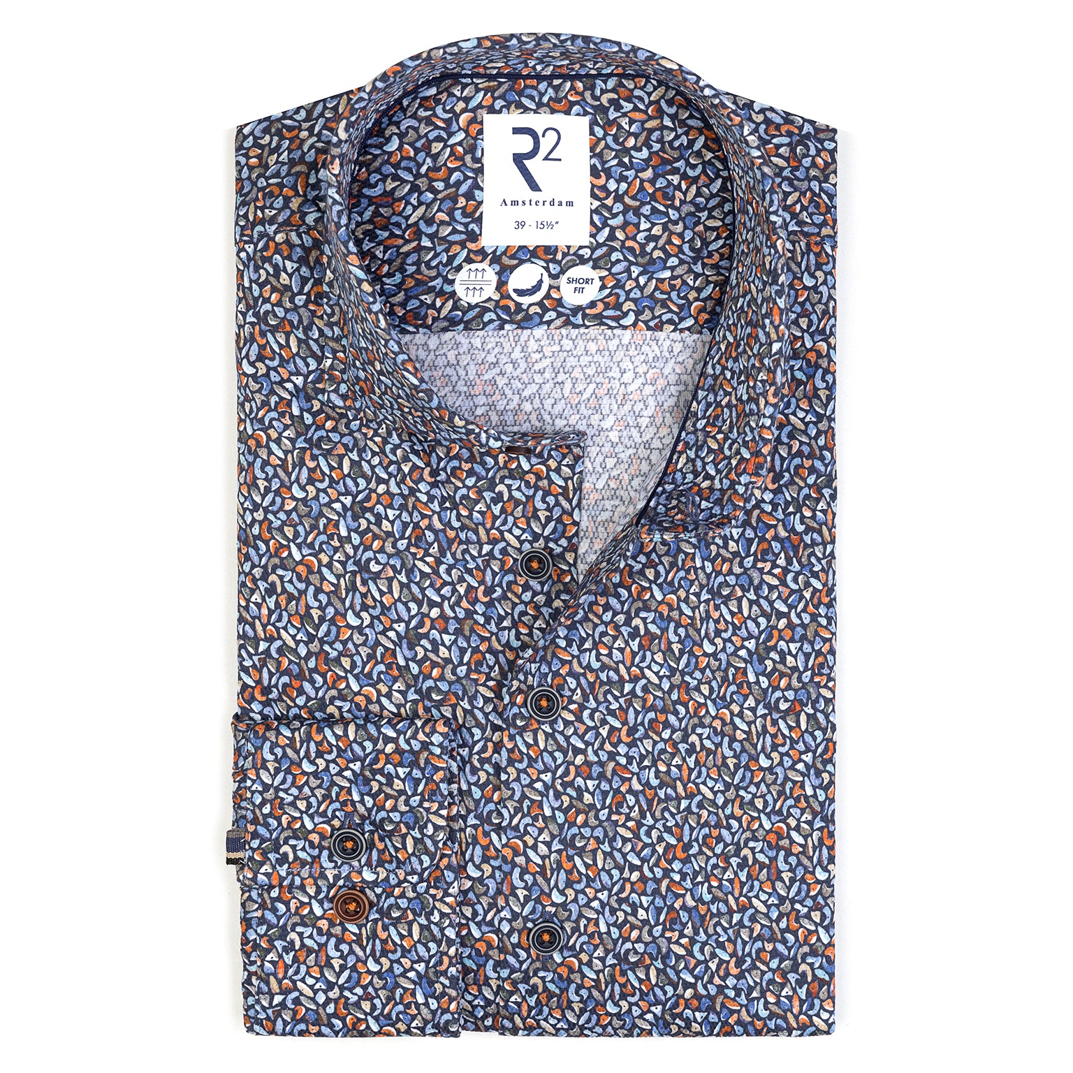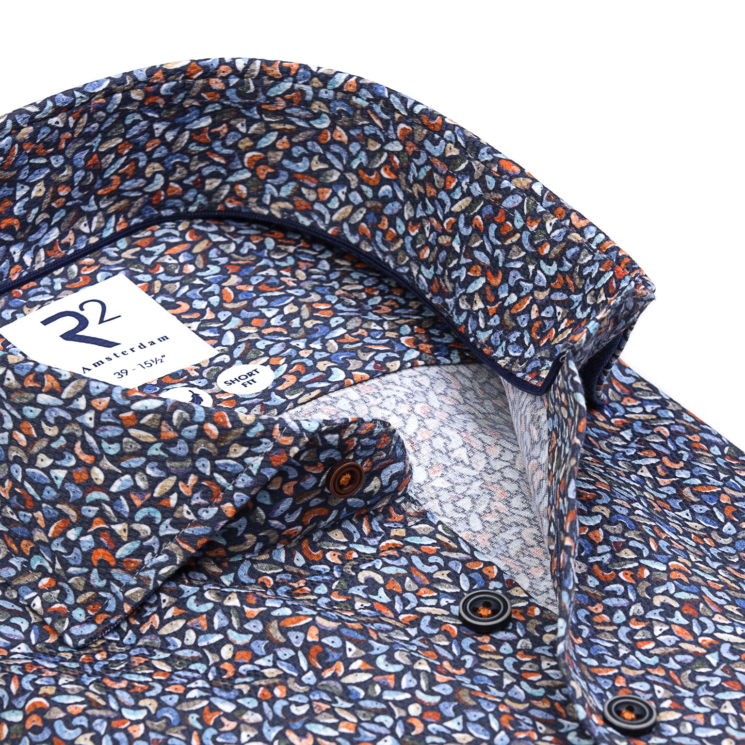 100% Cotton shirt with widespread collar. tailored with darts