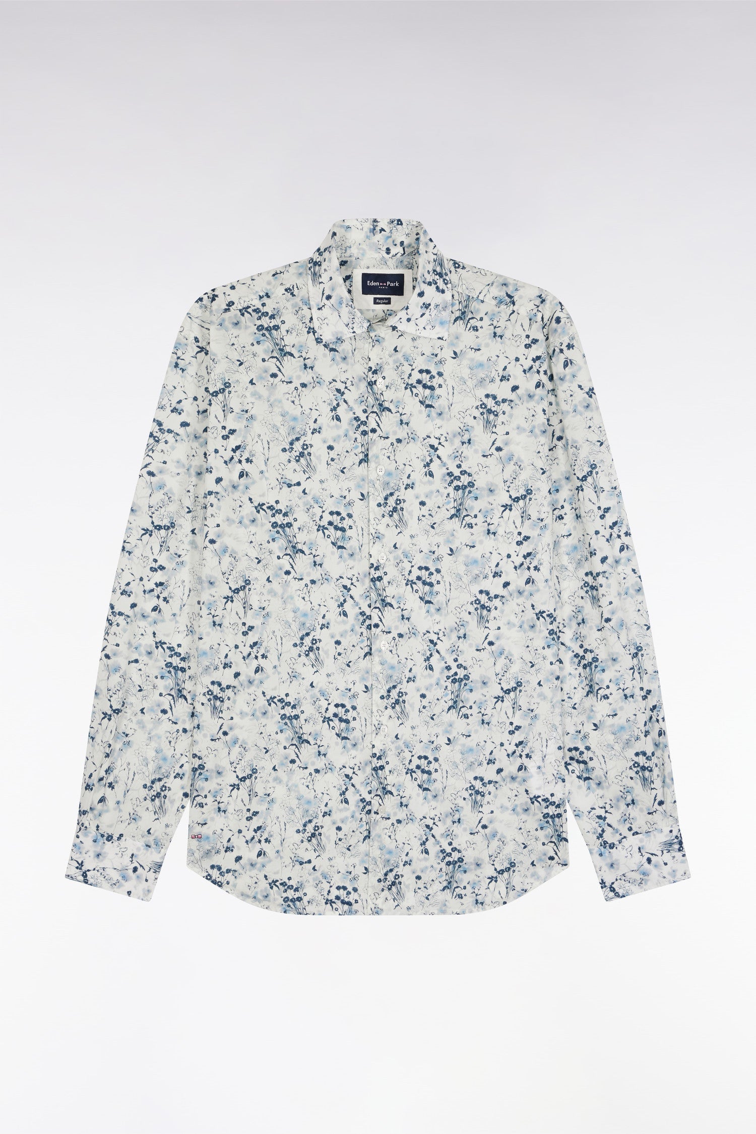 This delicate floral print is the star of this piece with its refined finishes. Designed for everyday wear, this straight-cut shirt is true to Eden Park's French Flair sense of elegance: a polished look with a twist of original finishes. Available in blue-gray or brown, this print, designed exclusively for our French label, dresses up the white cotton poplin with allure.