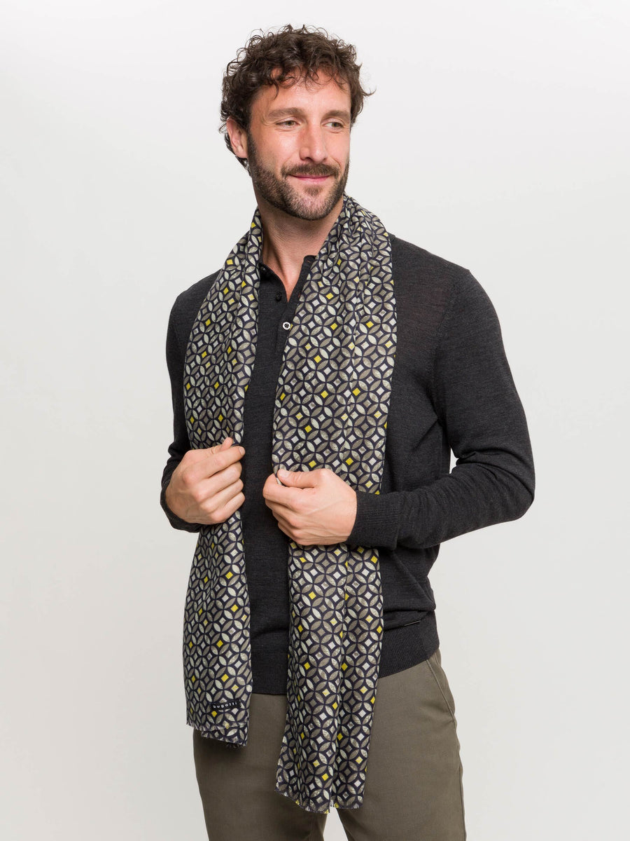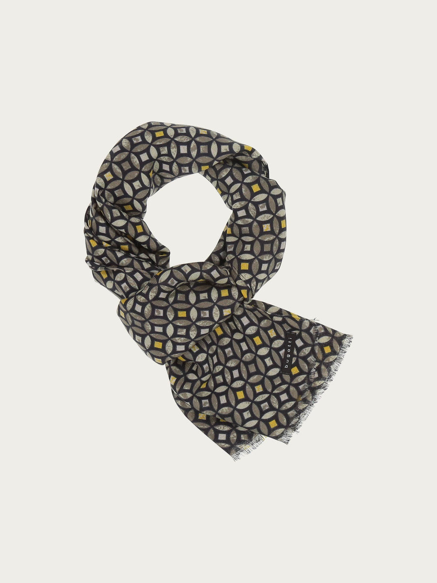 The bugatti scarf with a graphic emerald print is an absolute eye-catcher. The lightweight material is ideal as a business accessory in the office or at evening events and is an impressive eye-catcher. Measuring 43 x 180 cm, it can be worn in different ways and always looks elegant. Insider tip: The scarf is an excellent replacement for the classic tie!