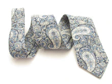 A Lee Manor Cotton Tie Made with Liberty Fabric. An absolutely stunning Van Buck cotton range using exclusive Liberty Tana Lawn printed fabric. This tie uses the Lee Manor print in the blue colourway. This tie features a large all over floral paisley design with a range of blues combined with a crisp white on a navy ground. We also have matching pocket squares as well as bow ties and self-tie bow ties available. This collection includes a range of different Liberty patterns which are all perfect for wedding ties, prom ties, events or even a day in the office. Order yours now and be sure to stand out with your dapper style!