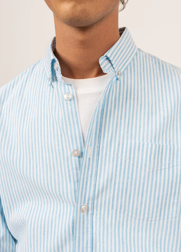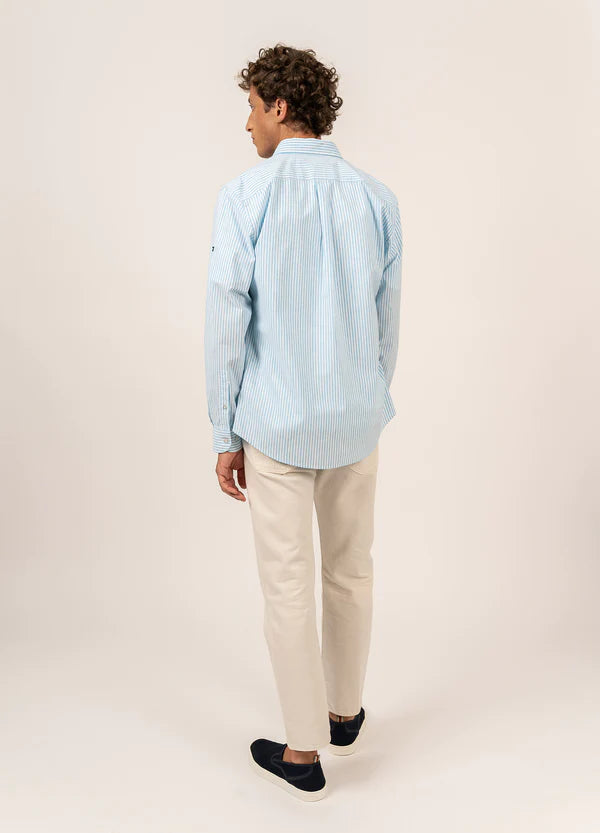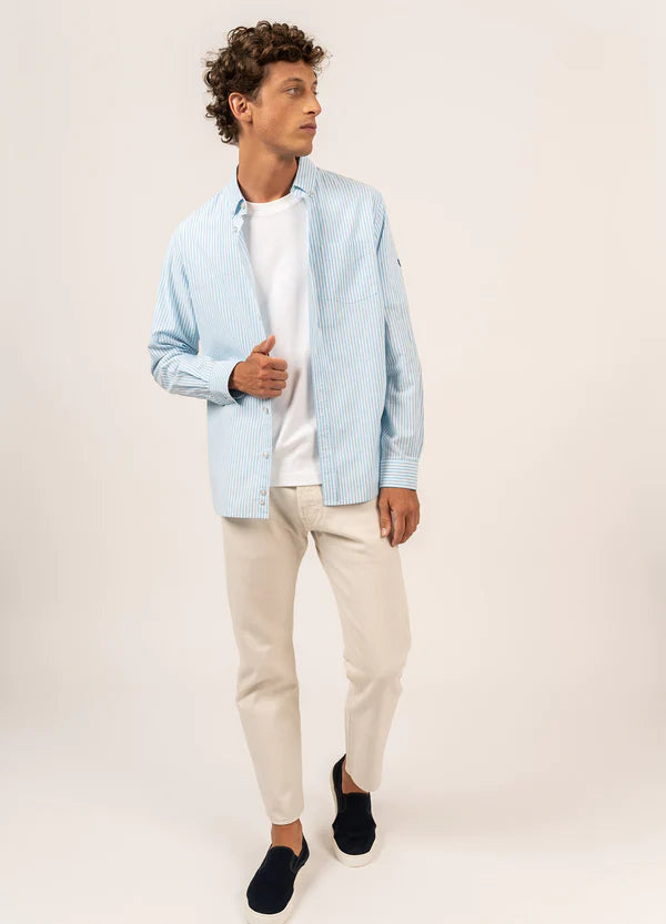Must-have in men's wardorbes, the striped shirt becomes more casual this season, with a regular fit and chest pocket. Made in cotton and linen, it is comfortable, light and breathable, perfect for sunny days.