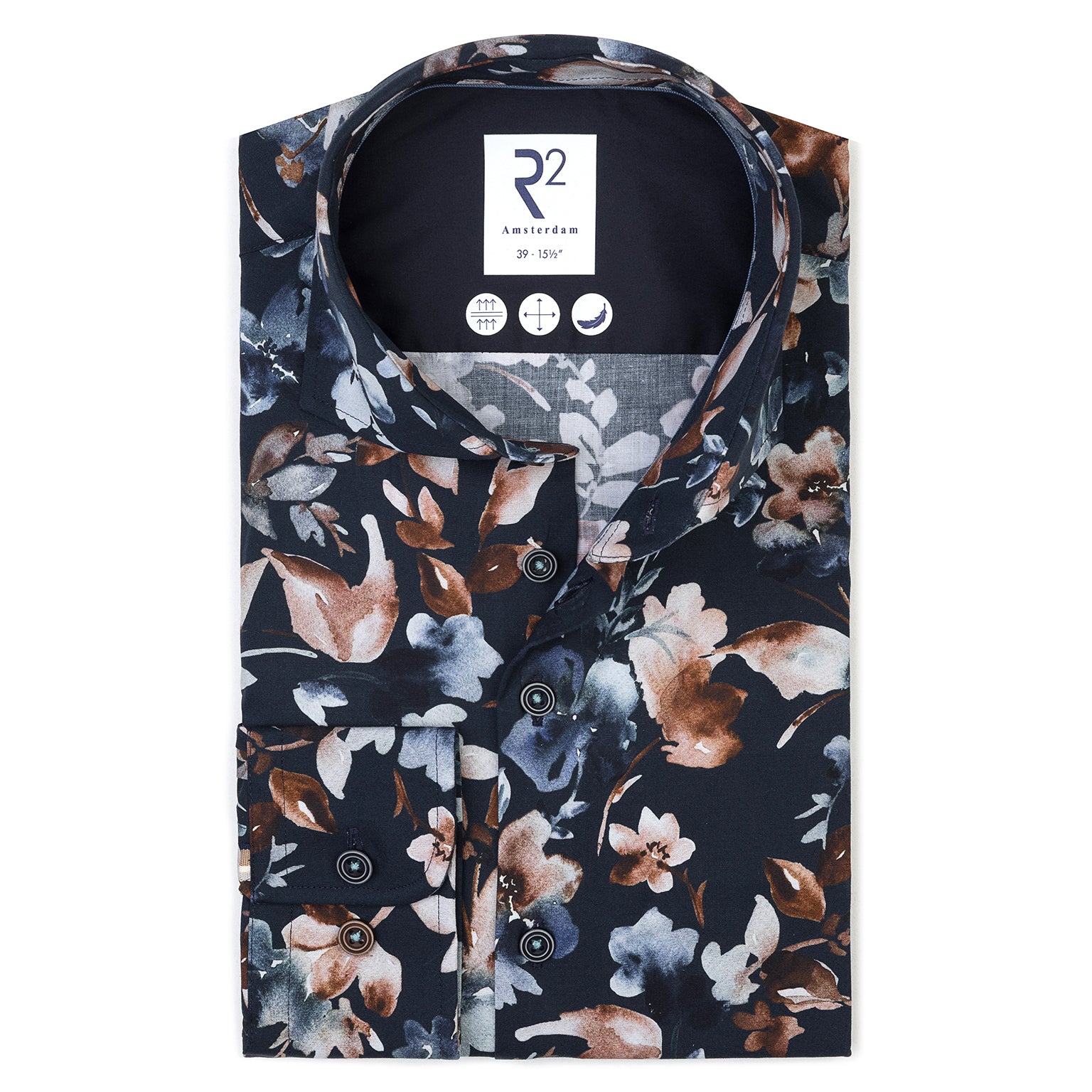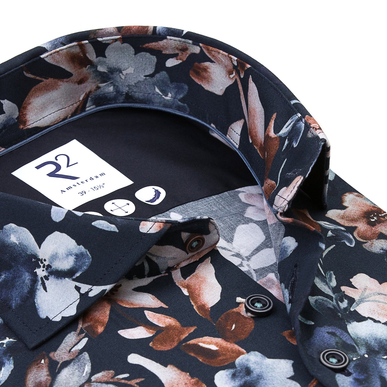 97% Cotton 3% elastane shirt with widespread collar. tailored with darts
