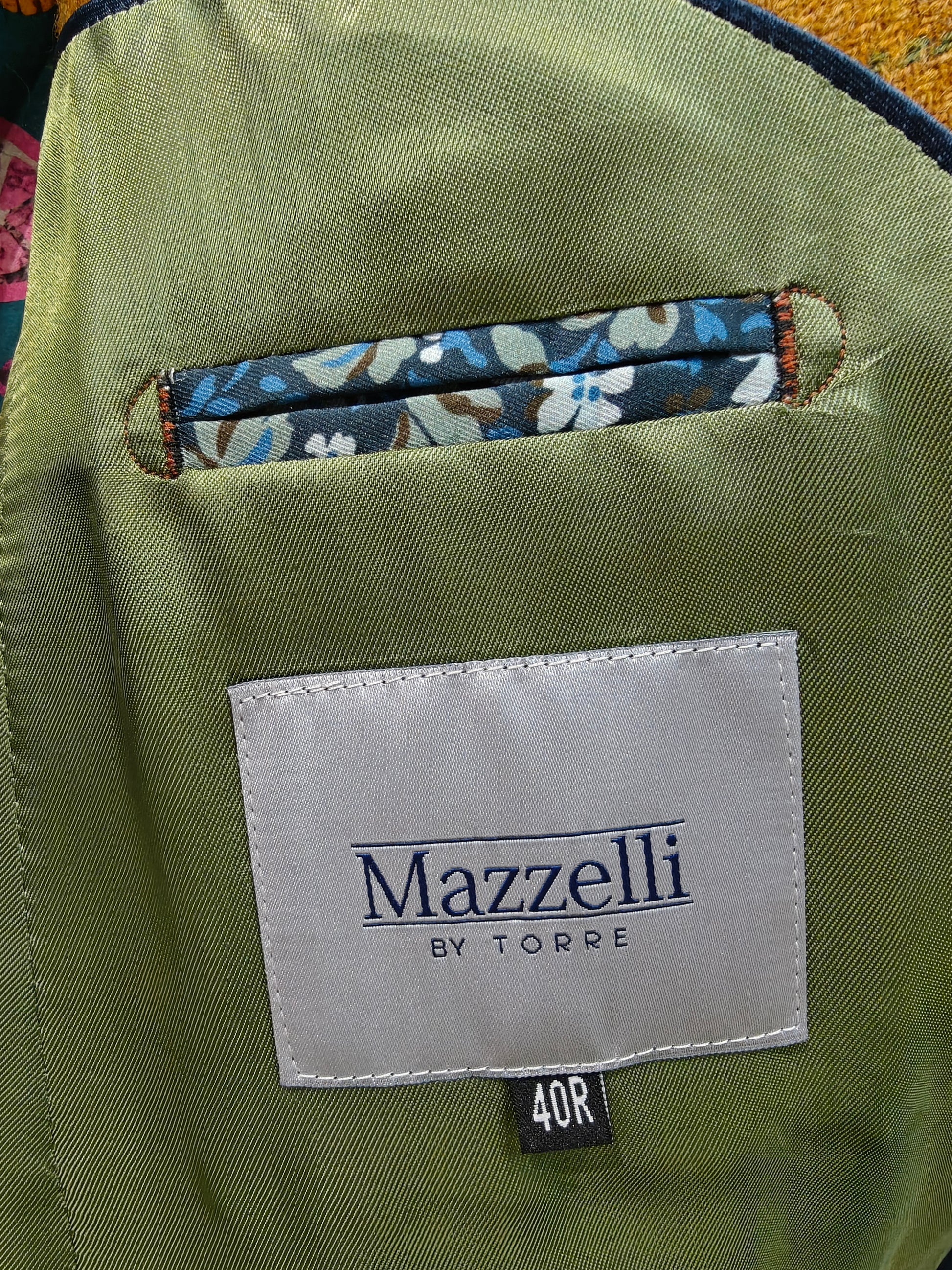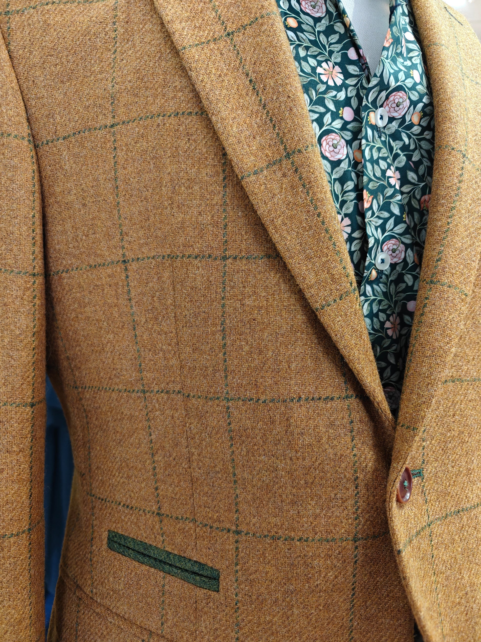 mustard ochre yellow tweed jacket green windowpane check by Torre for Mazzelli