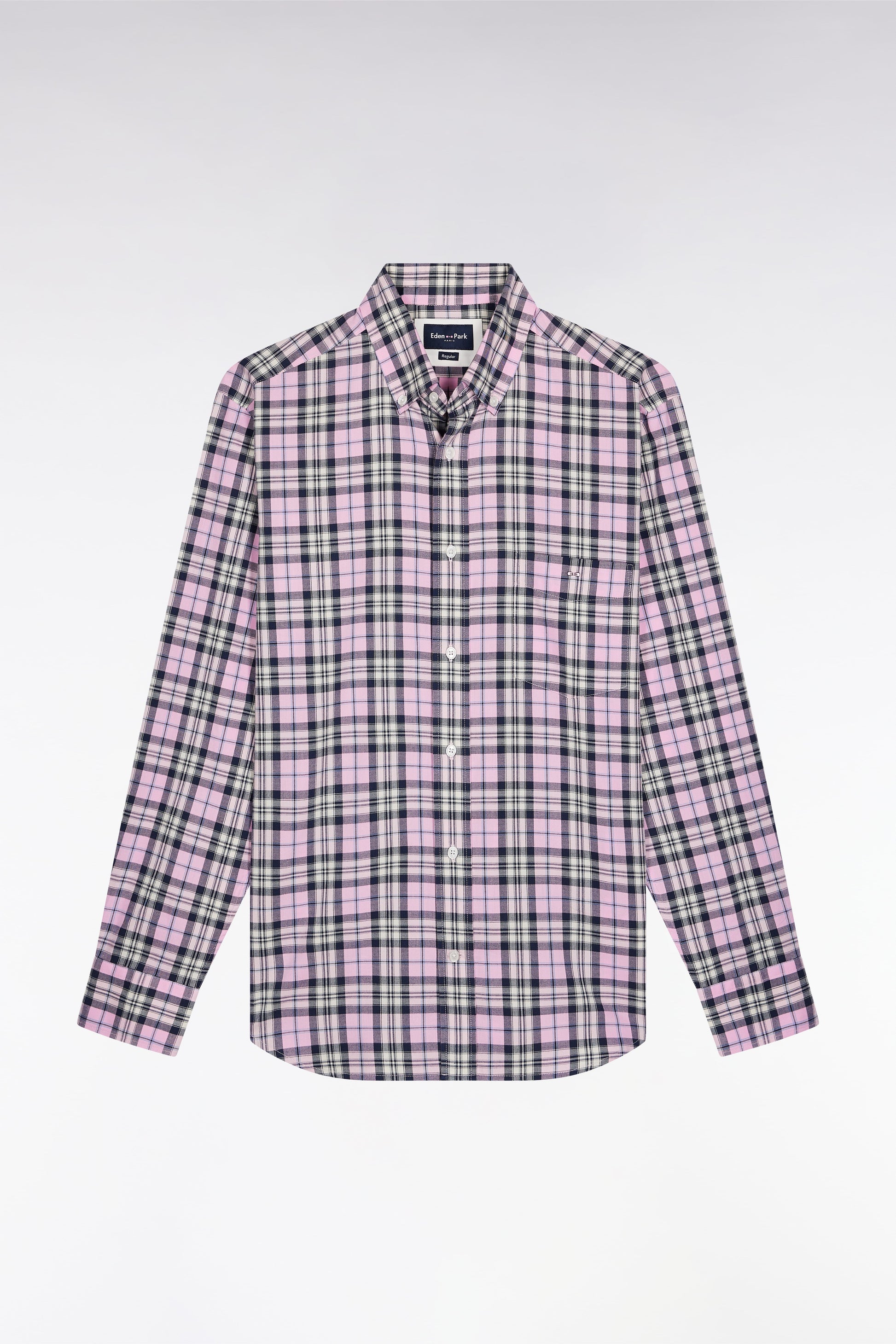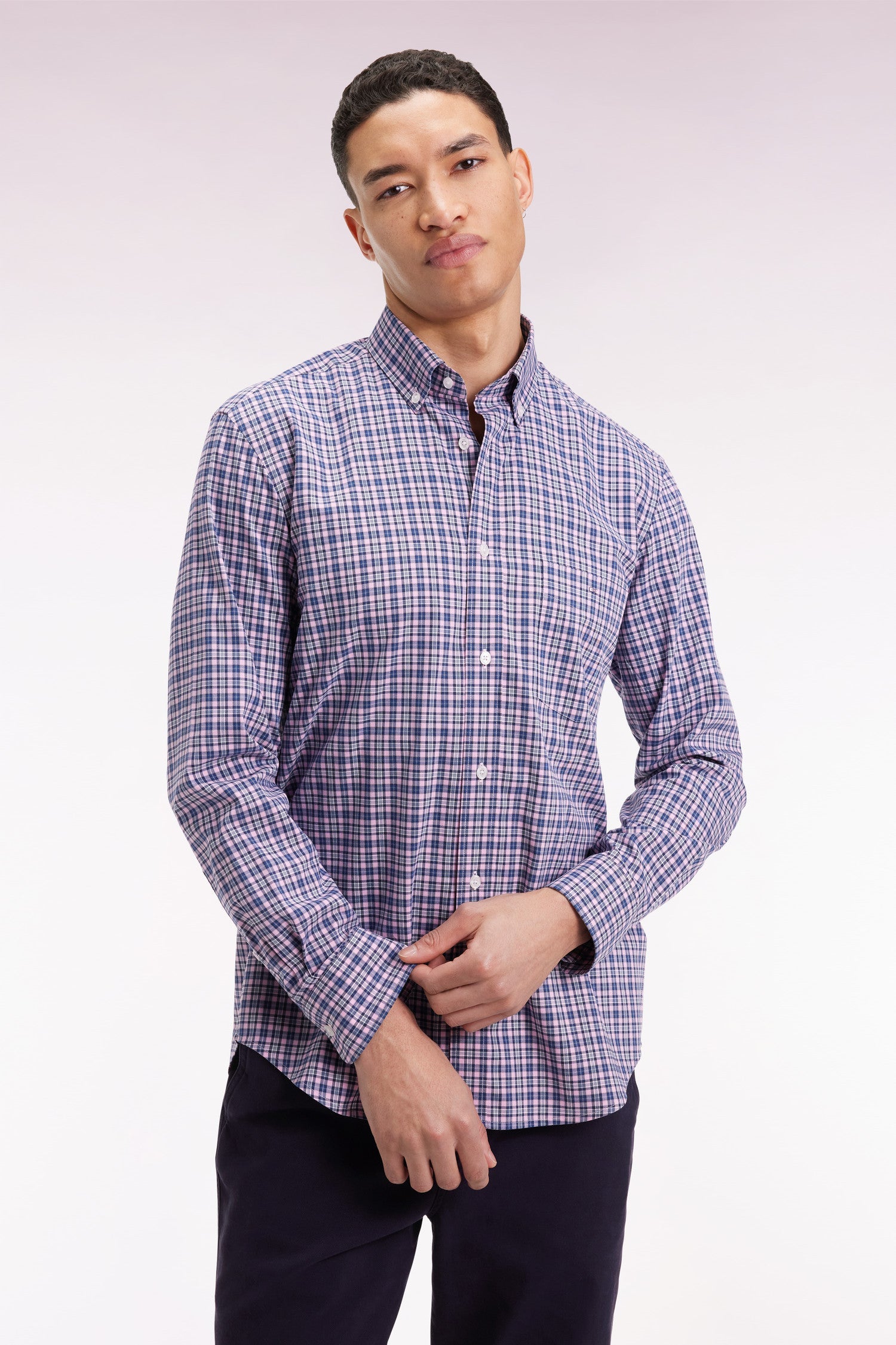 This men's plaid shirt, in navy cotton poplin punctuated with beige or pink, offers natural, understated elegance. Its straight cut and soft cotton make it a comfortable piece, ideal for structuring a casual outfit with style.