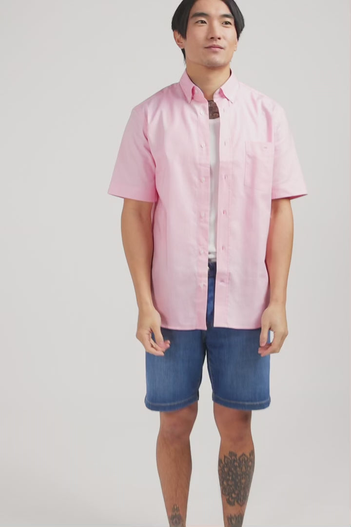 Revise your classics with this plain short-sleeved shirt available in several current colours. Chic and fresh, this model made from quality Oxford cotton promises perfect comfort all season long. Wear it next to the skin or over a plain t-shirt and rolled-up raw jeans.