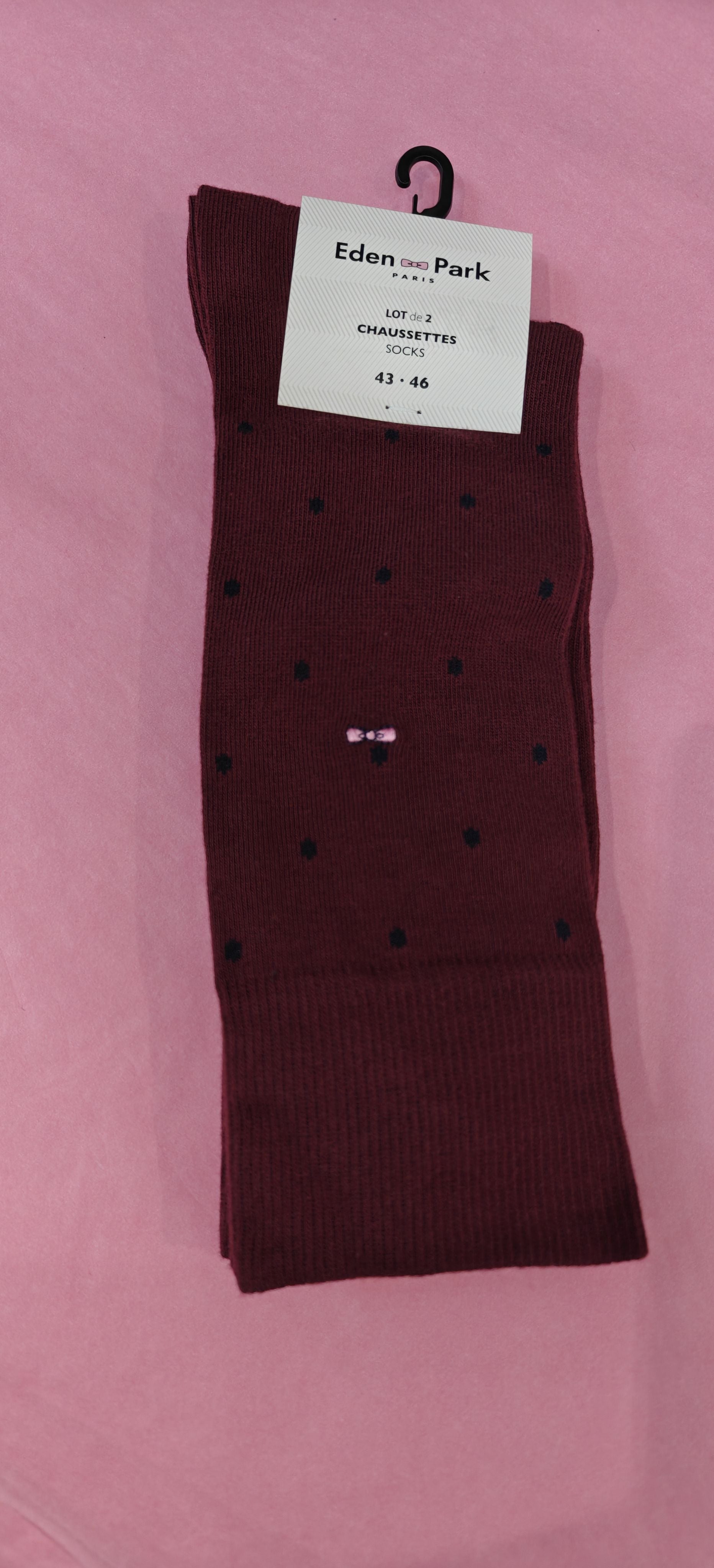 Spotty and Plain Pair of Socks Set in Wine by Eden Park