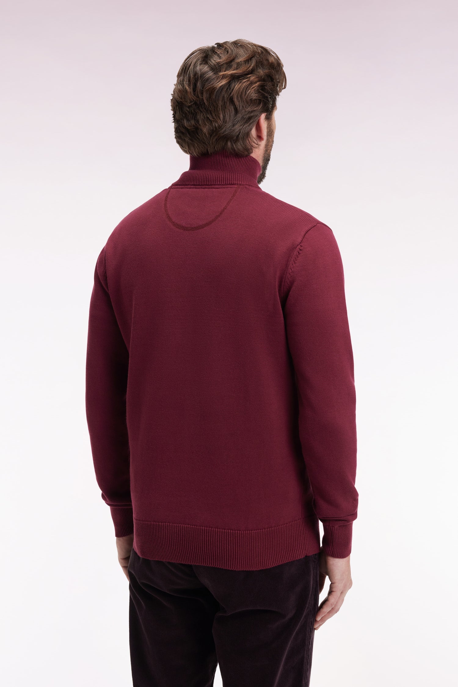Designed for the first cold days, this men's zip-up trucker-neck sweater revisits our timeless model in a denser knit version. Made from 100% cotton, this semi-zipped sweater offers controlled warmth without sacrificing softness or breathability. Its high-zip collar allows you to modulate the look, closed for a structured silhouette or open for a more casual wear. Faithful to the DNA of our company, we feature the meticulous finishing touches that are the hallmark of Eden Park wardrobe essentials: bow-tie embroidery on the chest, knitted ribbing and rugby-striped half-moon inside.