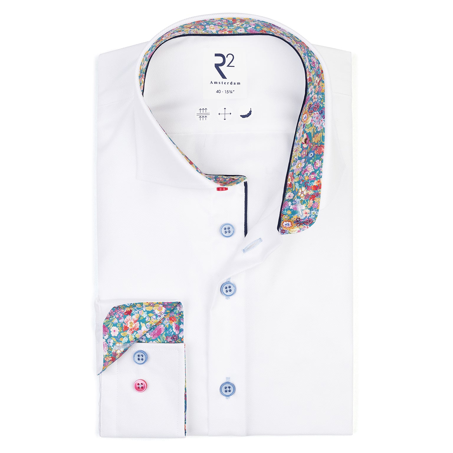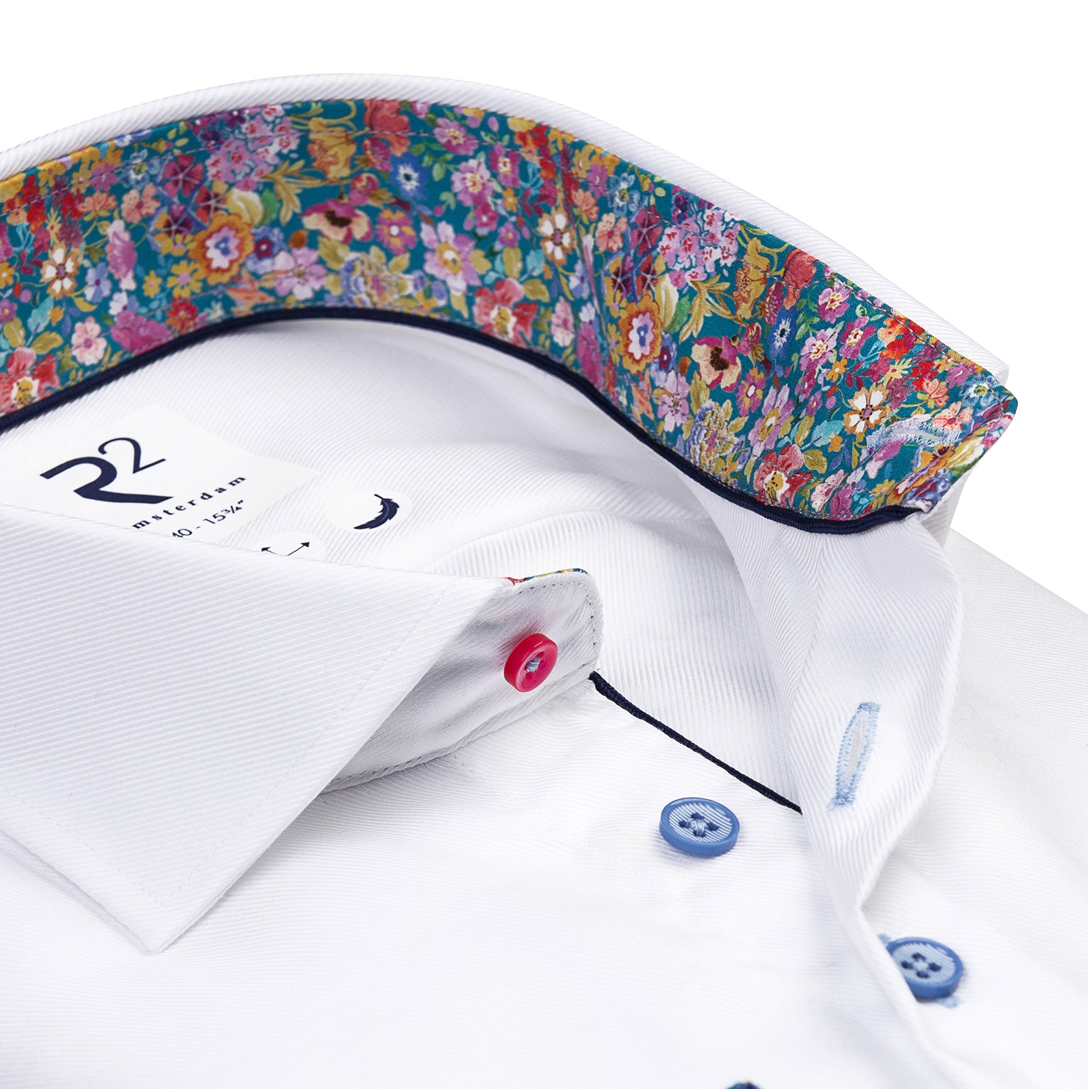 White 100% cotton shirt with Liberty fabric spring meadow cuff and collar